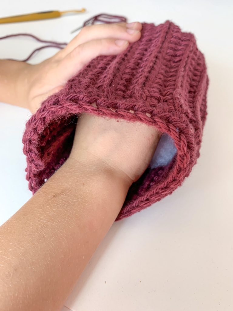 This pattern is super simple. You basically make a rectangle flat panel. Crochet along one side, seam up the two ends and crochet along the other side. After that you close up one side, stuff and close up the other side. All that’s left is creating the sections of the pumpkin.