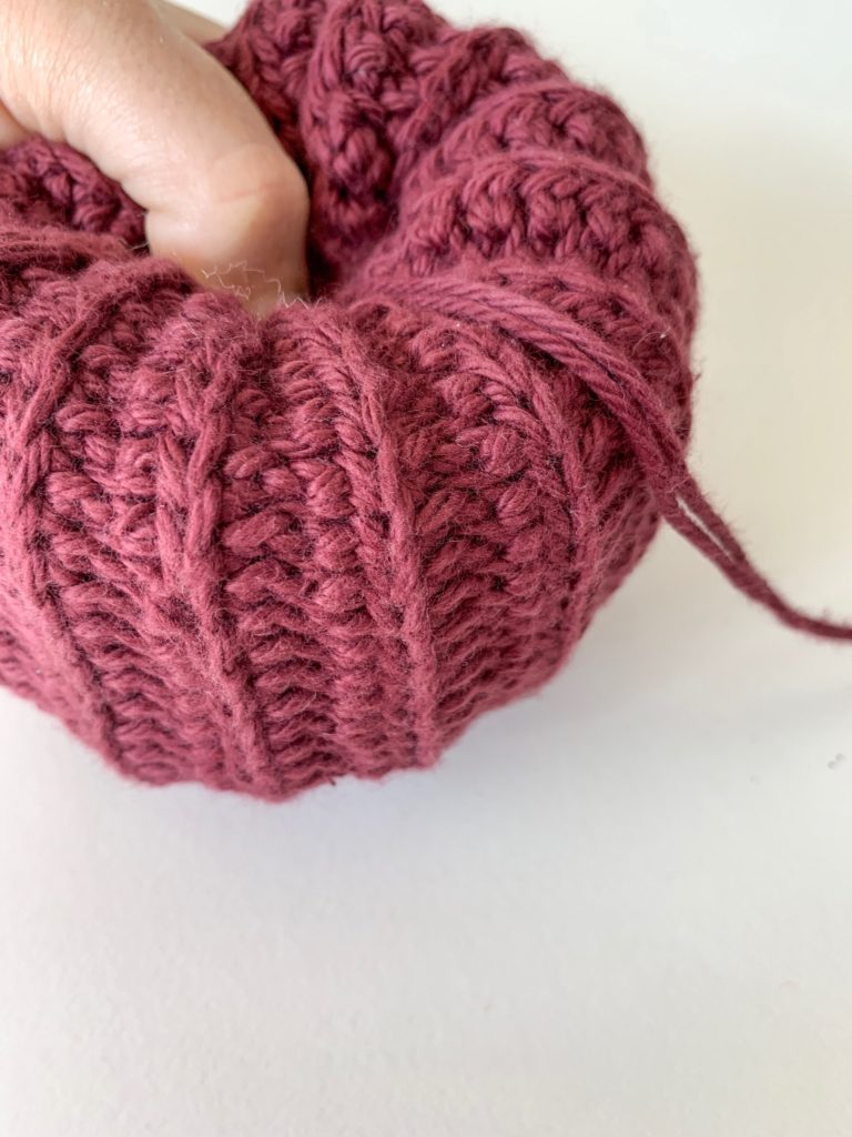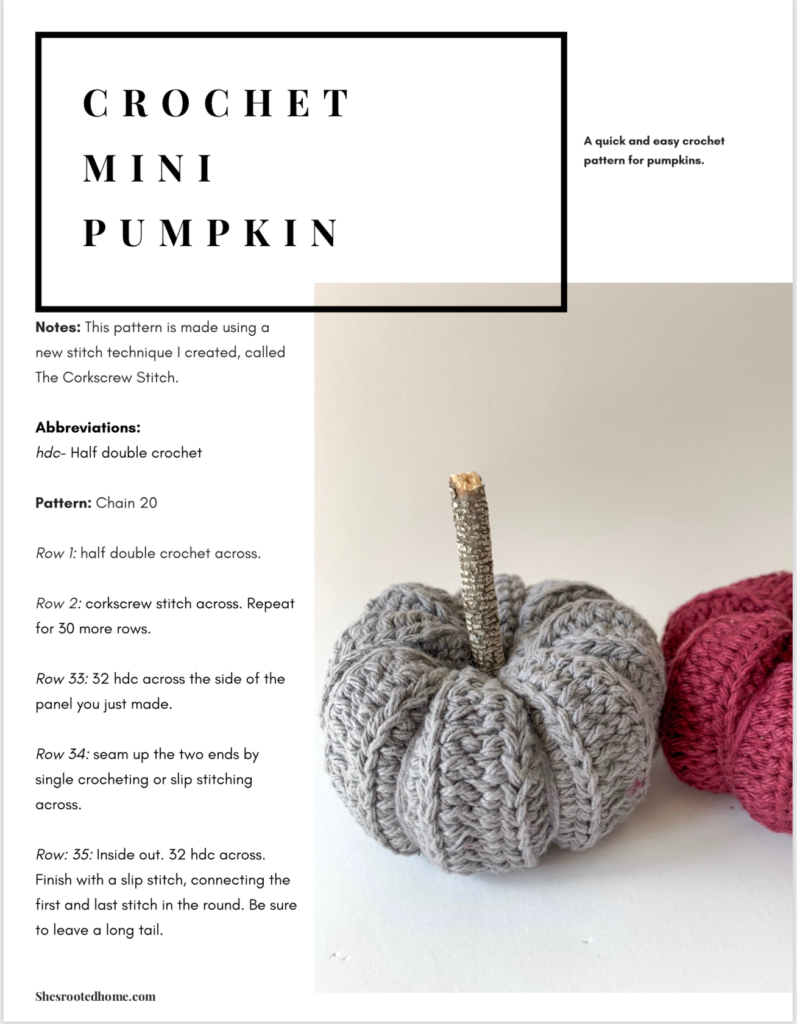 I had also just came up with a new ribbing stitch I thought would be fun to use for the pumpkin and I absolutely love how they turned out. Here is the new stitch I used to create the ribbing effect, The Corkscrew Stitch.
