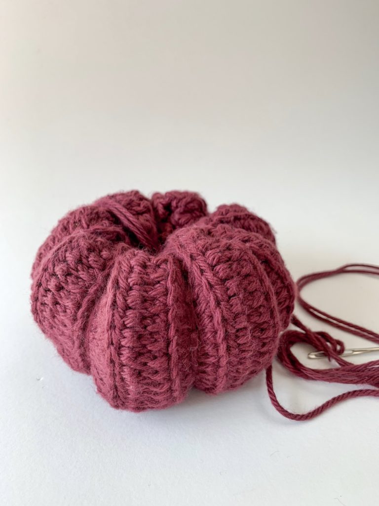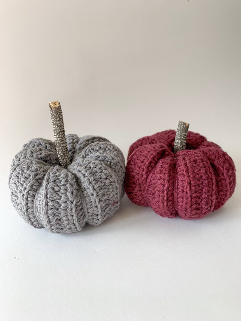 A few years ago I came across a crochet pumpkin pattern that I made for family and friends. Over the last few years those friends have asked me to make more, but I couldn’t seem to find the pattern. I decided I would just go for it and start crocheting a few small pumpkins, creating my own pattern.
